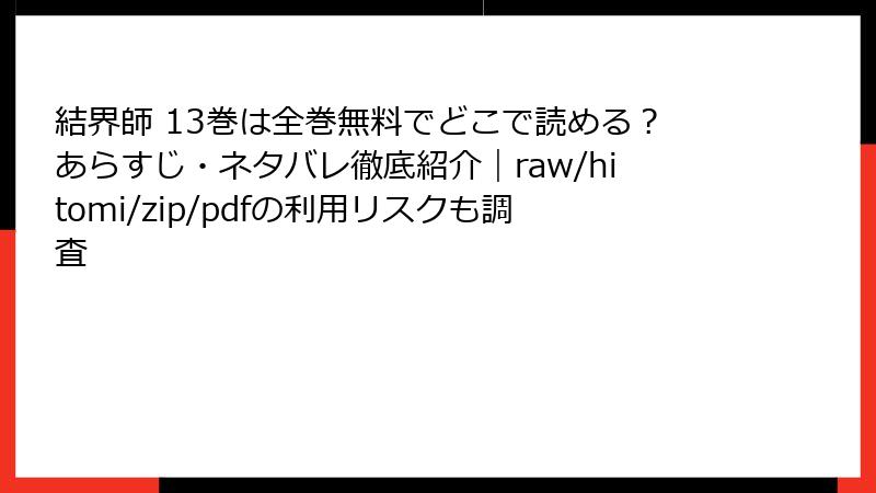 こんにちは、漫画好きの皆さん! ブログ管理人の私ですが、今日はちょっと真剣なトピックをお届けします。田辺イエロウ先生の名作『結界師』のような魅力的な漫画を、raw、hitomi、zip、pdf、漫画バンクなどの海賊版サイトで読むことのリスクについて、詳しく掘り下げてみましょう。無料で最新巻にアクセスできるのは魅力的ですが、2025年現在、これらのサイトは法的・セキュリティ・経済的な罠だらけ。利用者の被害事例が急増中で、軽い気持ちで訪れると取り返しのつかない事態に陥る可能性大です。以下では、リスクを多角的に分解して解説。未読の方も、参考に安全な読み方を考えてみてください!