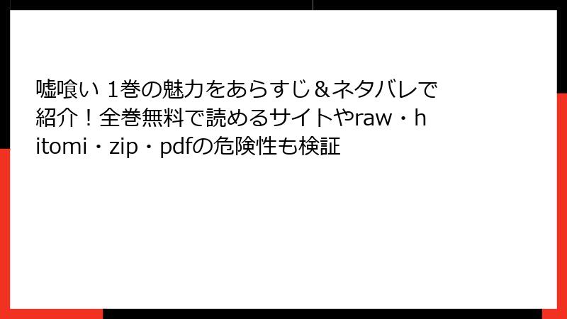 こんにちは、漫画愛好家の皆さん! 迫稔雄先生の傑作『嘘喰い』を無料で読みたい一心で、rawやhitomi、zip、pdf、漫画バンクなどの海賊版サイトに手を出したことはありませんか? 「一冊くらいなら大丈夫」と軽く考えてしまう気持ち、よくわかります。でも、実際には法的・セキュリティ・経済的なリスクが山積みで、後悔するケースが後を絶ちません。この記事では、そんな海賊版サイトの危険性を、ブログ形式で深掘りします。複数の