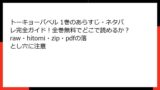 - ダウンロードの違法性: zip/pdfファイルの入手は明確な複製行為。閲覧だけでも「明らかな違法アップロードを知りながらの利用」として処罰対象。