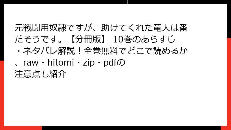 元戦闘用奴隷ですが、助けてくれた竜人は番だそうです。【分冊版】10巻:衝撃のネタバレ全開レビュー
