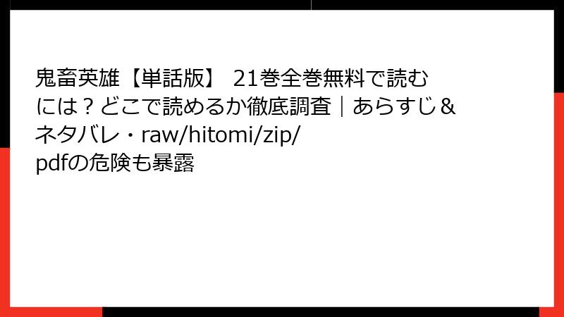 こんにちは、漫画好きの皆さん! 人気のエロティックファンタジー『鬼畜英雄【単話版】』のような作品を、raw、hitomi、zip、pdf、漫画バンクなどの海賊版サイトで無料で読みたい気持ち、わかります。でも、ちょっと待って! 2025年現在、これらのサイトは一見お得に見えますが、実は法的・セキュリティ・経済的な落とし穴が満載。軽い気持ちでアクセスすると、後悔する羽目になるケースが急増中です。この記事では、そんな海賊版サイトのリスクを多角的に掘り下げます。ブログ風に