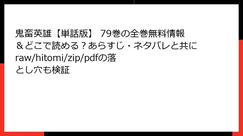 『鬼畜英雄【単話版】79巻』をraw、hitomi、漫画バンクなどの海賊版サイトで読むことは、法的、技術的、倫理的なリスクを伴います。刑事罰や民事訴訟の可能性、マルウェアによるデバイス破損、クリエイターへのダメージは、無料で読むメリットを大きく上回るデメリットです。好きな作品を長く楽しむためにも、正規のプラットフォームで『鬼畜英雄』を応援しましょう。タカミチの新スキル「生気反転」や氷原の民とのドラマチックな展開を、安心して堪能してほしいです!