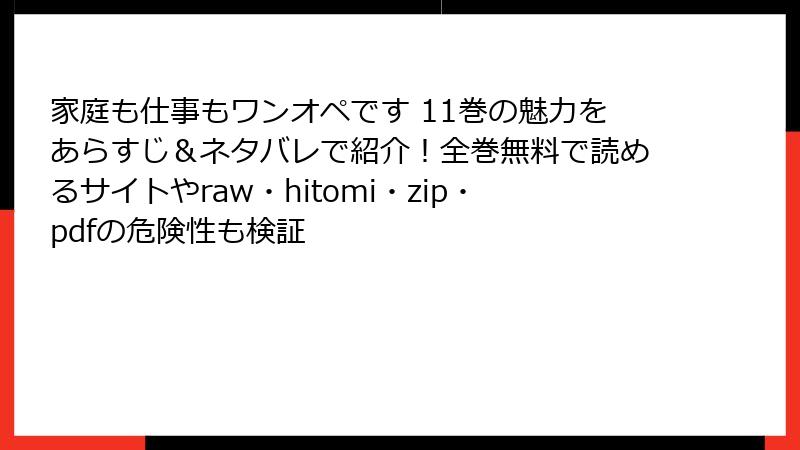 家庭も仕事もワンオペです 11巻の魅力をあらすじ&ネタバレで紹介!全巻無料で読めるサイトやraw・hitomi・zip・pdfの危険性も検証