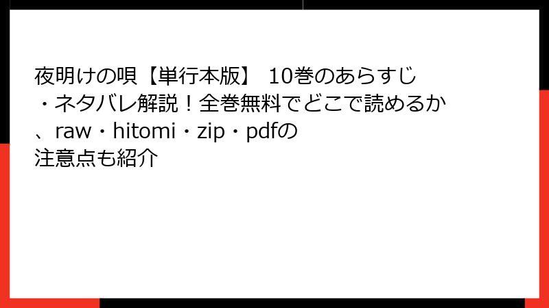 夜明けの唄【単行本版】 10巻のあらすじ・ネタバレ解説!全巻無料でどこで読めるか、raw・hitomi・zip・pdfの注意点も紹介