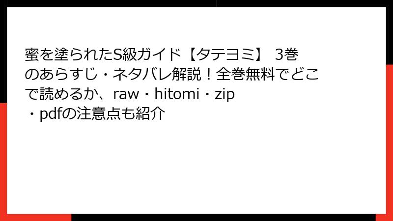 こんにちは、BLウェブトゥーン大好きブロガーです! 今回は、韓国発の大人気作『蜜を塗られたS級ガイド【タテヨミ】』の3巻にスポットを当てて、たっぷり深掘りしていきたいと思います。この作品は、ガイドバースという独自の超能力世界を舞台に、S級ガイドの神堂新(しんどう あらた)がC級ギルド「ノアピ」のメンバーたちと織りなす、甘く危険な関係性が魅力のBL漫画。1巻・2巻で築かれた緊張感が、3巻で一気に加速し、読者の心を鷲掴みにします。ネタバレ満載の詳細あらすじを、読み応え抜群に解説していきますので、未読の方はご注意を! さっそく、巻の全体像から始めましょう。