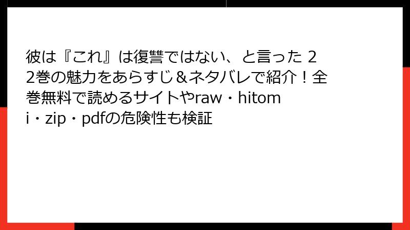 彼は『これ』は復讐ではない、と言った 22巻の魅力をあらすじ&ネタバレで紹介!全巻無料で読めるサイトやraw・hitomi・zip・pdfの危険性も検証