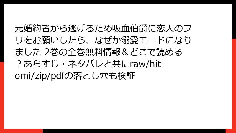 - 『元婚約者から逃げるため吸血伯爵に恋人のフリをお願いしたら、なぜか溺愛モードになりました』を海賊版サイトで読むリスクを徹底解説