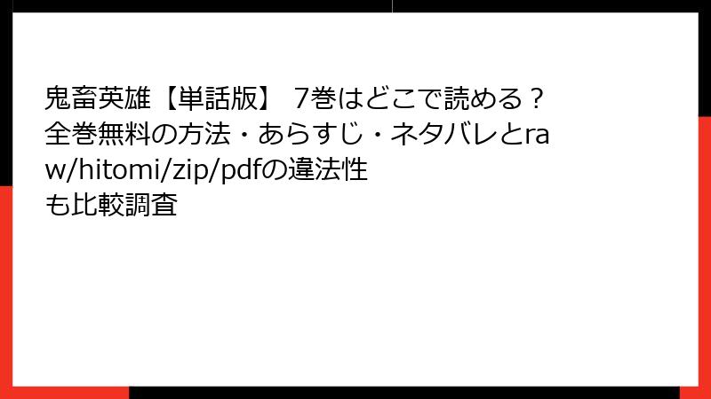 こんにちは、漫画愛好家のブロガーです! 今回取り上げるのは、大人気漫画『鬼畜英雄【単話版】7巻』を、raw、hitomi、zip、pdf、漫画バンクなどの海賊版サイトで読むことのリスクについてです。この過激な異世界ファンタジーは、よのきさんの魅力的なストーリーと作画で多くのファンを魅了していますが、無料で読める海賊版サイトに手を出してしまう人もいるかもしれません。しかし、これらのサイトを利用することは、重大なリスクを伴います。この記事では、その危険性を詳しく解説し、なぜ正規ルートで読むべきかをブログ形式で掘り下げます。さっそく、