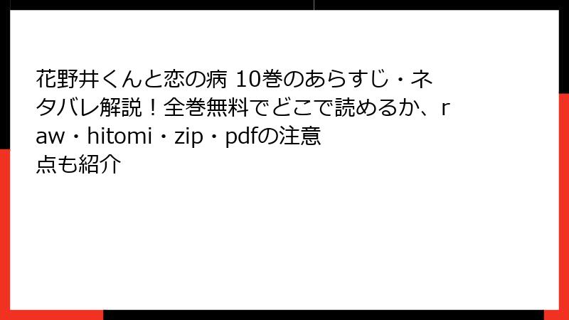 『花野井くんと恋の病』10巻は、甘さと切なさが交錯する傑作。読者の9割近くが「続きが気になる!」と興奮気味で、XやRedditの盛り上がりからもその人気は明らか。一部で新キャラやシリアス展開への不満はあるものの、総合的にはシリーズの魅力をさらに高めた巻と言えます。あなたはこの巻をどう感じましたか? 好きなシーンやキャラ、ぜひコメントで教えてください! 次は11巻のレビューでまたお会いしましょう。それでは、漫画ライフを楽しみましょ〜!