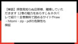 | zip/pdf配布 | 圧縮ファイル形式で違法ダウンロードを促す | マルウェア感染、ファイル破損、法的責任 |