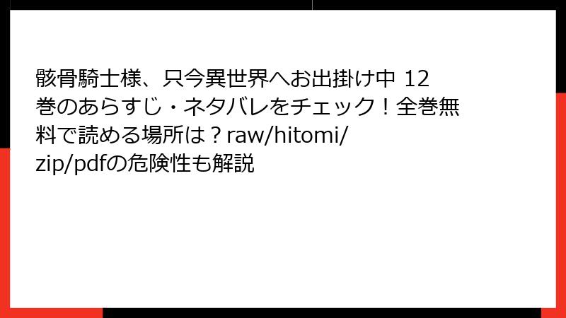 こんにちは、漫画好きの皆さん! 人気の異世界ファンタジー『骸骨騎士様、只今異世界へお出掛け中』のような作品を、無料で手軽に読みたい気持ちはわかります。でも、raw、hitomi、zip、pdf、漫画バンクなどの海賊版サイトを利用するのは、想像以上の落とし穴が潜んでいます。2025年現在、これらのサイトは違法アップロードの温床で、法的・セキュリティ・経済的なリスクが急増中。今回は、そんな海賊版サイトの詳細な危険性を、具体例を交えながら深掘りします。安全に漫画を楽しむための参考にしてくださいね。未読の方はネタバレ回避を!