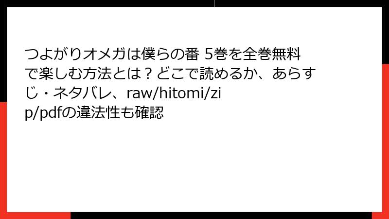 漫画ファンなら一度は耳にしたことがある、海賊版サイト。raw、hitomi、zip、pdf、漫画バンクなどの名前が挙がるこれらのサイトは、最新の人気作品を無料で読める魅力を振りまきながら、数えきれないほどのリスクを潜ませています。特に、オメガバースBLの傑作『つよがりオメガは僕らの番』のような魅力的なコミックを、こうした違法ルートで手に入れようとするのは、短期的な快楽の代償として大きな代償を払うことになりかねません。2025年現在、取り締まりの強化やサイバー脅威の進化により、これらのサイトの危険性はますます高まっています。この記事では、法的・セキュリティ・経済的・倫理的な観点から、詳細にそのリスクを掘り下げていきます。ブログ形式で読みやすくまとめましたので、海賊版の誘惑に負けそうな皆さん、ぜひ最後までお読みください。安全な読書ライフを心がけましょう!
