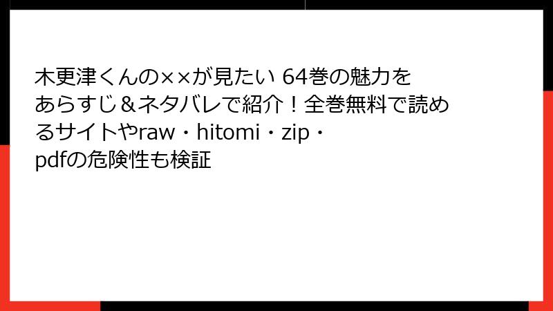 こんにちは、漫画好きのブロガー、マンガハントです! 今日は、萩原ケイク先生の大人気恋愛コミック『木更津くんの××が見たい』の64巻について、じっくりとあらすじを掘り下げてお届けします。この作品は、性欲から始まった二人の関係が、徐々に本物の恋へと発展していく様子を描いた、大人のための切なくも熱いラブストーリー。64巻では、物語が新たな局面を迎え、主人公たちの心の揺らぎがより鮮明に浮かび上がります。ネタバレ満載なので、未読の方はご注意を! それでは、巻ごとのハイライトから深掘りしていきましょう。