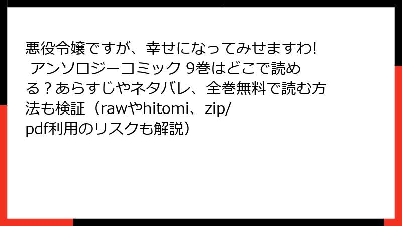 - 『悪役令嬢ですが、幸せになってみせますわ! アンソロジーコミック 9巻』を海賊版サイトで読むリスクを徹底解説