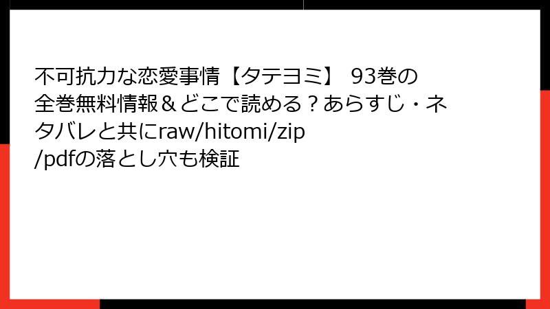 『不可抗力な恋愛事情【タテヨミ】』93巻は、復讐と愛のせめぎ合いが最高潮に達する、BLファン必見のエピソード。しかし、raw、hitomi、漫画バンクなどの海賊版サイトで読むことは、法的リスク、セキュリティの危険、倫理的問題を引き起こします。以下に、今回のポイントを振り返ります。