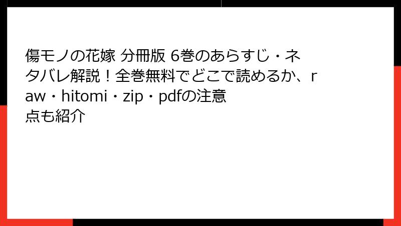 結論として、『傷モノの花嫁 分冊版』6巻は、ファンも新規読者も満足させる傑作。アクションとロマンスのバランス、深いテーマ性が、読者の心を掴んで離しません。皆さんは6巻のどのシーンが好きでしたか? コメントで感想や7巻の予想をぜひシェアしてください! 次回のレビューもお楽しみに!