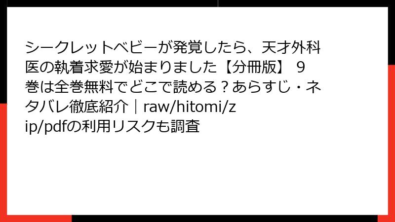 - 『シークレットベビーが発覚したら、天才外科医の執着求愛が始まりました』を海賊版サイトで読むリスク:知っておくべき危険性