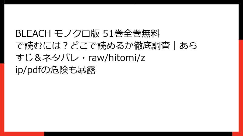 BLEACH モノクロ版 51巻:海賊版サイトで読むリスクの全貌
