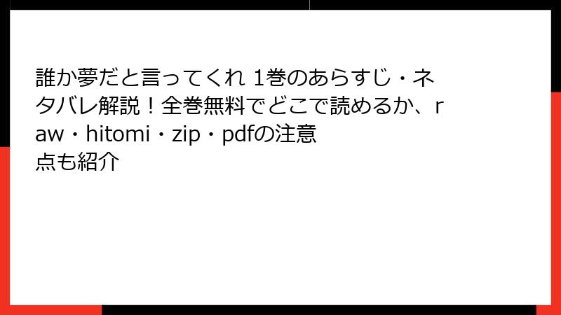 『誰か夢だと言ってくれ』1巻は、レビューや口コミから見ても、青春と恋のドキドキをバランス良く楽しめる作品として高評価。以下に、おすすめポイントをまとめます。