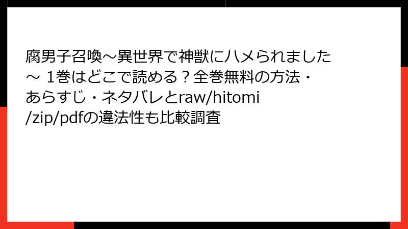 こんにちは、BL漫画を愛しつつ、健全なオタクライフを応援する腐男Gです! 藤咲もえ先生の『腐男子召喚~異世界で神獣にハメられました~』は、異世界BLの傑作として話題沸騰中。しかし、残念ながら「raw」「hitomi」「zip」「pdf」「漫画バンク」といった海賊版サイトでこの作品を読むことを考える人もいるようです。今回は、これらの海賊版サイトを利用するリスクを、法的・倫理的・技術的な観点から詳しく解説します。無料で読みたい気持ちはわかりますが、危険が潜んでいることを知って、賢い選択をしましょう! ブログ形式で、読み応えのある内容をお届けします。