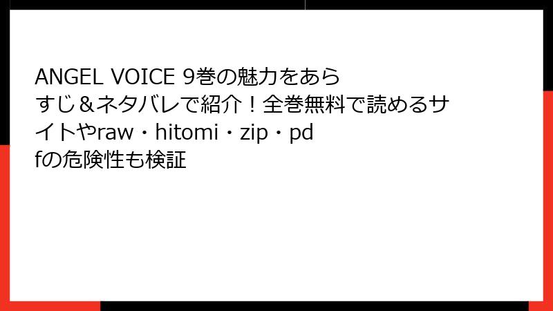 ANGEL VOICE 9巻の魅力をあらすじ&ネタバレで紹介!全巻無料で読めるサイトやraw・hitomi・zip・pdfの危険性も検証