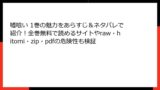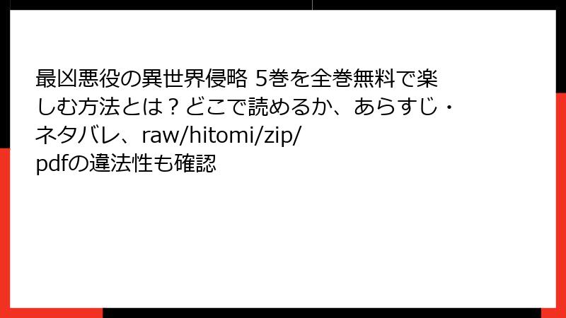 海賊版サイトは、セキュリティ面での危険性が極めて高いです。raw、hitomi、zip、pdfなどのサイトは、運営元が不明で、悪意のあるプログラムが仕込まれていることが多々あります。『最凶悪役の異世界侵略』を無料で読もうとした結果、デバイスや個人情報が危険に晒されるリスクは深刻です。