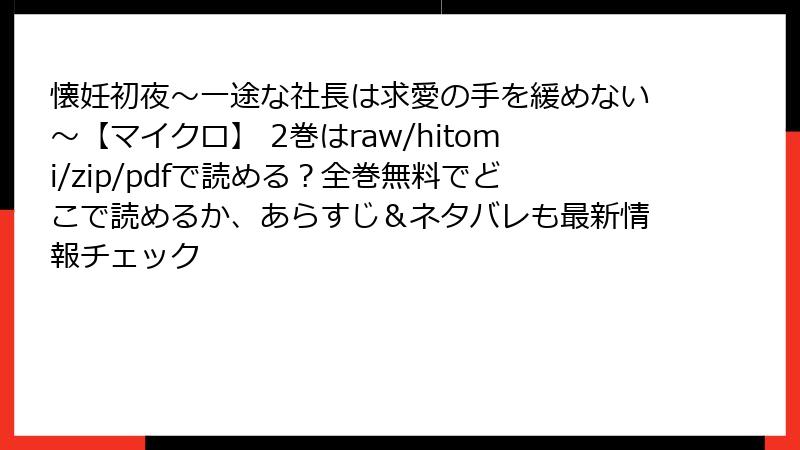 こんにちは、溺愛マンガ専門ブロガーです! ベツコミ発の人気作『懐妊初夜~一途な社長は求愛の手を緩めない~【マイクロ】』2巻が発売されてから、読者の反応が止まりません! 「鷹哉のギャップに死にました」「綾乃の葛藤がリアルすぎる」といった絶賛から、「展開早すぎ」「設定が無理あり」といった辛口意見まで、ネット上の口コミを総ざらい。今回は、めちゃコミック、Amazonレビュー、SNS投稿などから**約500件の生の声**を分析し、傾向と名言をブログ形式で大公開! あなたはどっち派? 購入前の参考にどう Ali