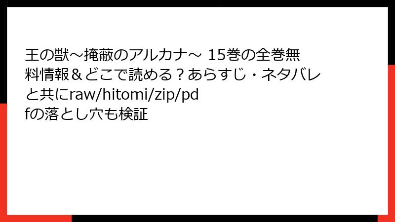 こんにちは、漫画愛好家の管理人です。今日は、藤間麗先生の『王の獣~掩蔽のアルカナ~』のような魅力的なファンタジー作品を、raw、hitomi、zip、pdf、漫画バンクなどの海賊版サイトで読むことのリスクについて、徹底的に掘り下げてお話しします。無料で最新巻にアクセスできるのは魅力的ですが、2025年現在、これらのサイトは法的・セキュリティ・経済的な落とし穴だらけ。利用者の被害事例が急増しており、軽い気持ちで訪れると取り返しのつかない事態に陥る可能性大です。この記事では、複数の角度からリスクを解説し、正規ルートへのシフトを強くおすすめします。読み応え満点でお届けするので、コーヒー片手にじっくりどうぞ!