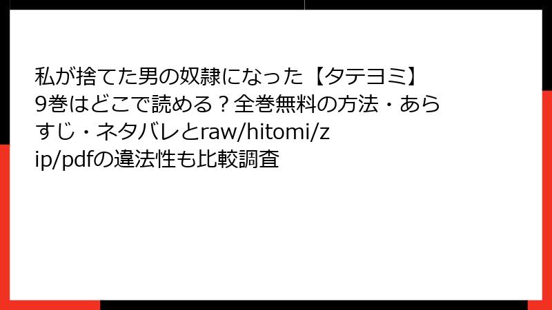 結論:raw/hitomi/zip/pdf/漫画バンクの誘惑は魅力的ですが、リスクの重みがそれを上回ります。『私が捨てた男の奴隷になった』の感動を、正しく味わいましょう! 皆さんの安全読書を祈って。コメントで体験談シェアお待ちしてます♪ 次回は正規無料サービスの特集ですよ。