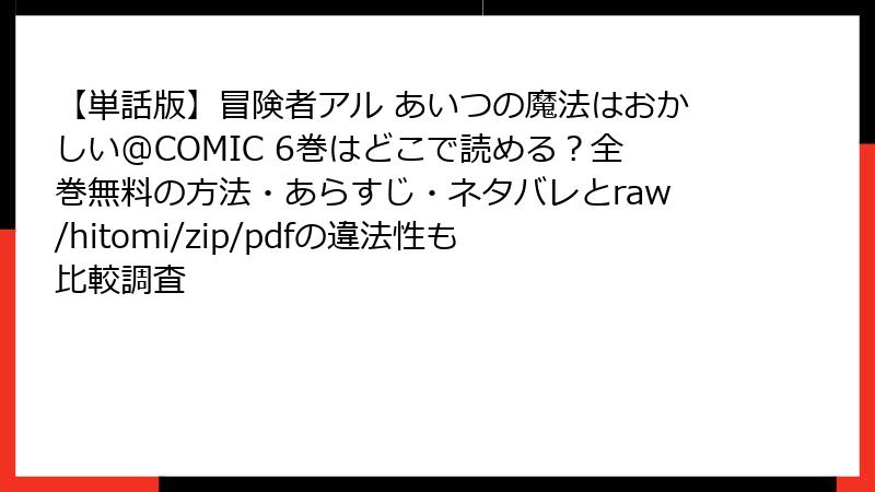 - 【単話版】冒険者アル あいつの魔法はおかしい@COMIC 海賊版サイト(raw/hitomi/zip/pdf/漫画バンク)で読む大リスク完全ガイド:絶対に避けろ!