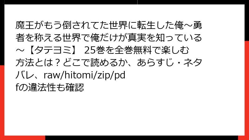 - 『魔王がもう倒されてた世界に転生した俺~勇者を称える世界で俺だけが真実を知っている~【タテヨミ】』25巻 レビュー・口コミ・評判を徹底分析