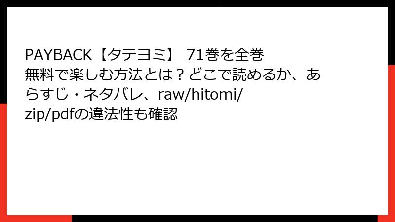『PAYBACK【タテヨミ】』のような人気作品は、海賊版サイトのターゲットになりやすく、特に71巻のような最新巻は違法アップロードが横行しがちです。しかし、無料で読める誘惑に飛びつく前に、以下のリスクを理解することが重要です。