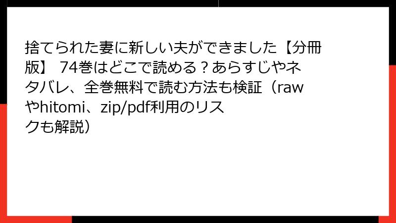 注意点として、配信状況は出版社の都合で変わる可能性あり。アプリの検索機能で「捨てられた妻に新しい夫ができました 74巻」と入力して確認を。
