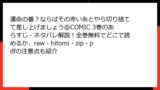 まず、海賊版サイトって何? rawは生のスキャン版漫画をアップロードしたサイトで、hitomiは主にアダルト寄りの画像共有プラットフォーム、zipやpdfは圧縮ファイルでダウンロード可能な違法アーカイブ、漫画バンクは過去に大規模閉鎖された有名リーチサイトの後継版です。これらは著作権者の許可なく、無断で漫画をスキャン・配布する違法プラットフォーム。Google検索で簡単にヒットし、最新巻を即閲覧できるように見えますが、運営者は国外サーバーを使って広告収入やユーザー データ収集で儲けています。