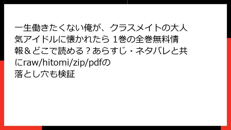 一生働きたくない俺が、クラスメイトの国民的アイドルに懐かれたら 1巻 完全ネタバレ解説