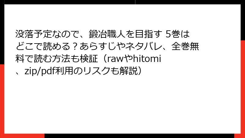 クラフトが命を削って完成させた「黎明」の剣を、zip1つで手に入れるのは、物語のテーマを根底から否定する行為。5巻の感動を本当に味わいたいなら、公式で“正々堂々”と購入するのが、クラフトの鍛冶道に敬意を払う唯一の方法です。