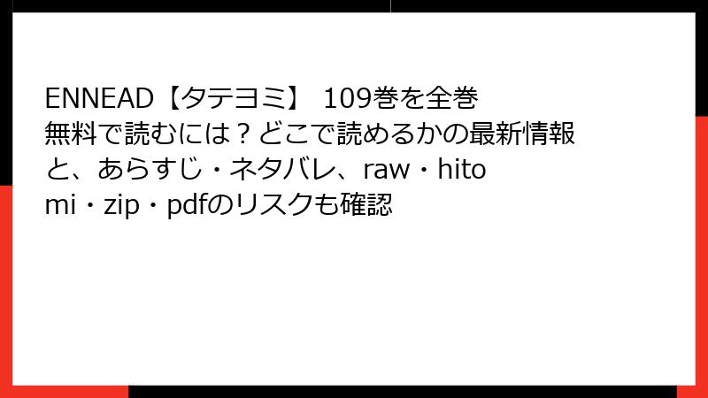 まとめ:109巻は『ENNEAD』の魅力を凝縮した必読エピソード