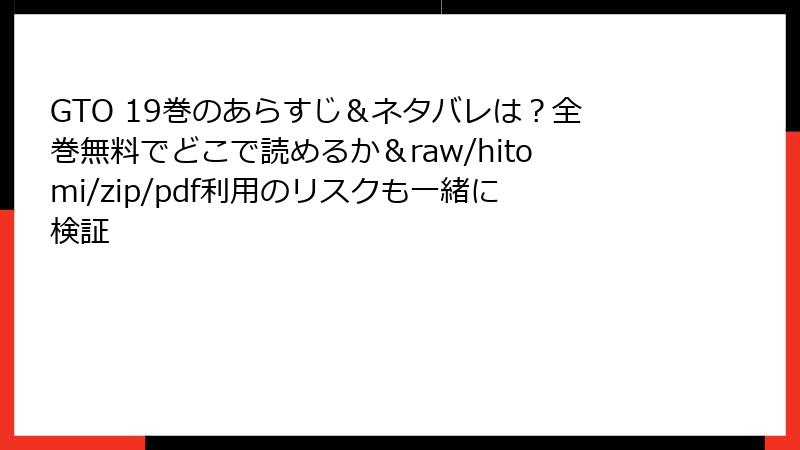 3. GTOをraw/hitomi/zip/pdf/漫画バンクで読むとヤバい理由:海賊版の“本当の代償”を徹底解剖