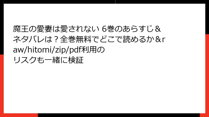 こんにちは、少女漫画ブロガーのあかりです! 大好きな『魔王の愛妻は愛されない』、最新6巻の衝撃展開に胸が熱くなった方も多いはず。でも、「ちょっとだけ…」と海賊版サイトに手を伸ばしていませんか? raw、hitomi、zip、pdf、漫画バンク――名前を聞くだけで「無料で読める!」とテンションが上がるけど、実はあなたのスマホ・PC・お財布・心に致命傷を負わせる罠が満載なんです。今回は「知らなかった」では済まされないリスクを、5つのカテゴリに分けてガッツリ解説。最後まで読めば、もう二度と海賊版には近づけなくなりますよ!