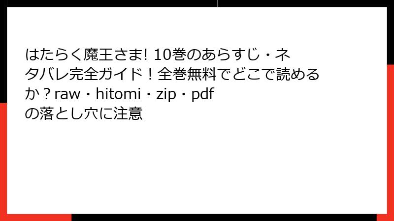 「はたらく魔王さま!」10巻をraw/hitomi/zip/pdf/漫画バンクで読むリスク全解説:違法海賊版があなたの人生を破壊する5つの理由