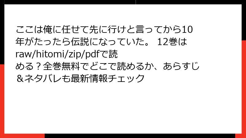 「12巻のネタバレ見たし、すぐ読みたい!」→ わかる。でも、raw、hitomi、漫画バンク、zip、pdf などの海賊版サイトに手を出すと、人生がマジで終わるレベルのリスクが待っている。以下、ガチで詳しく解説する。