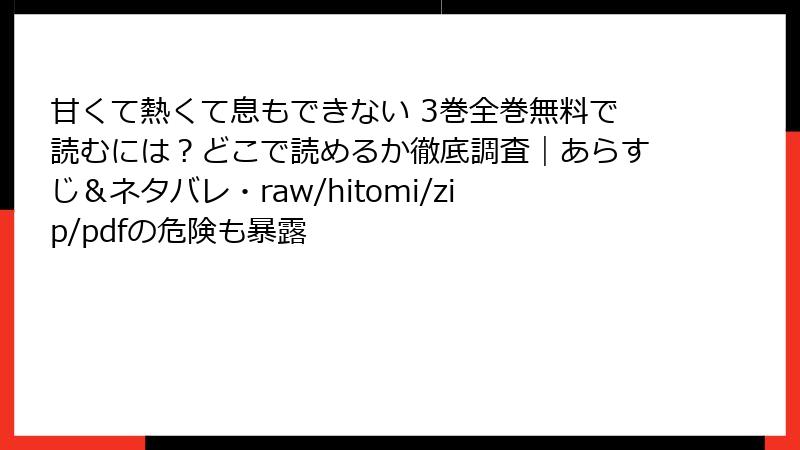 甘くて熱くて息もできない 3巻全巻無料で読むには?どこで読めるか徹底調査|あらすじ&ネタバレ・raw/hitomi/zip/pdfの危険も暴露