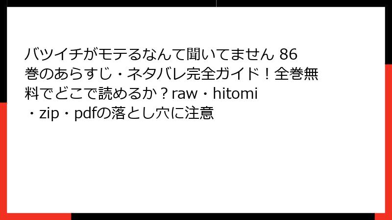 バツイチがモテるなんて聞いてません 86巻のあらすじ・ネタバレ完全ガイド!全巻無料でどこで読めるか?raw・hitomi・zip・pdfの落とし穴に注意
