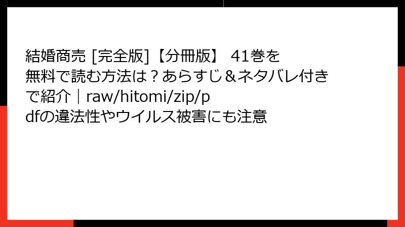 ![『結婚商売 [完全版]【分冊版】 41巻』を海賊版サイトで読むリスクを徹底解説](https://jfi23hunffs22f.conohawing.com/for_images_wp/wp-content/uploads/2025/10/article_20251027_113332_746.jpg)