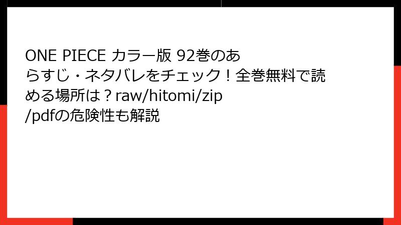 カラー版の鮮烈な龍、血塗られた過去、色鮮やかな花街……92巻は、ワンピースの「美学」と「残酷さ」が交錯する金字塔。次巻93巻では、**ルフィの覇王色覚醒**が待っています。あなたは、この運命の歯車にどう立ち向かいますか?
