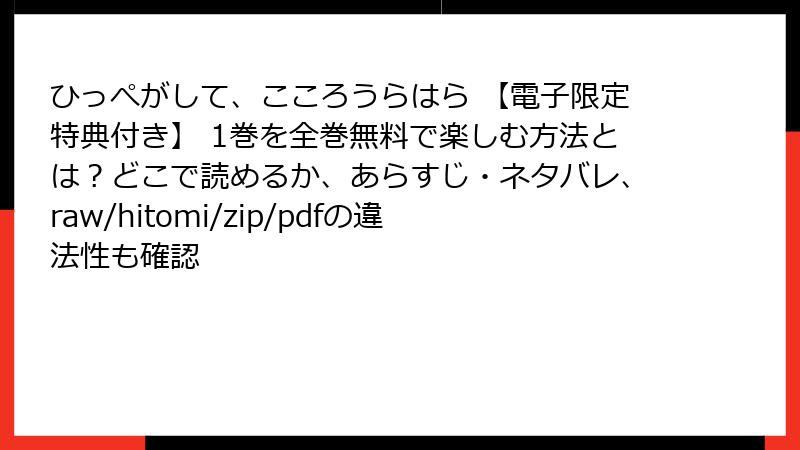 こんにちは、BL漫画を愛するブロガーのあかりです! 今日は、素敵な新刊『ひっぺがして、こころうらはら』1巻(幾田むぎ先生作)を、raw、hitomi、zip、pdf、漫画バンクなどの海賊版サイトで読もうとする誘惑に警鐘を鳴らします。無料で手に入る魅力はわかりますが、そこには法律違反からサイバー攻撃まで、想像以上の危険が潜んでいます。2025年現在、海賊版サイトの被害報告は増加傾向で、ウイルス感染や個人情報漏洩が社会問題化しています。この記事では、そんなリスクを詳しく解説。あなたの安全を守るための知識として、ぜひ読み進めてください!