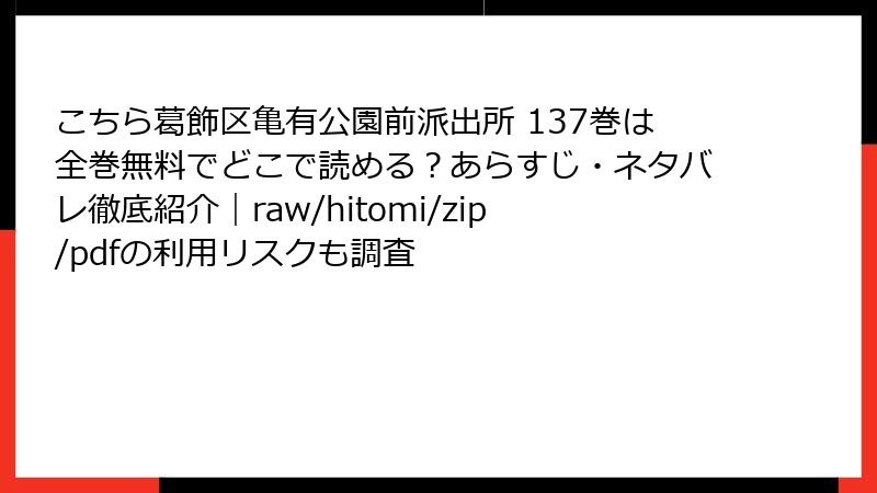タグでセクション分けして詳しく解説。箇条書きや表も活用し、こち亀137巻の魅力を余すことなくお伝えします! 全体的な評判:安定の爆笑と懐かしさが共存