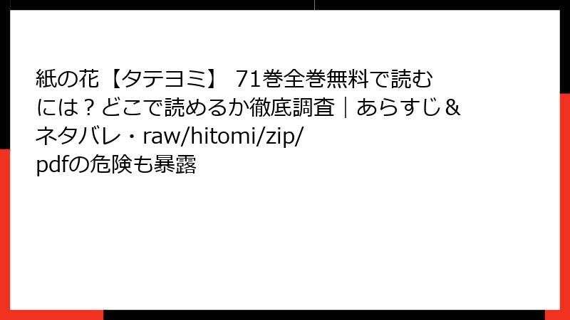 つまり、「71巻を今すぐ読む」=「雑誌最新話 or 先行まとめ」を狙うのが鉄則。以下、各サービスの詳細です。