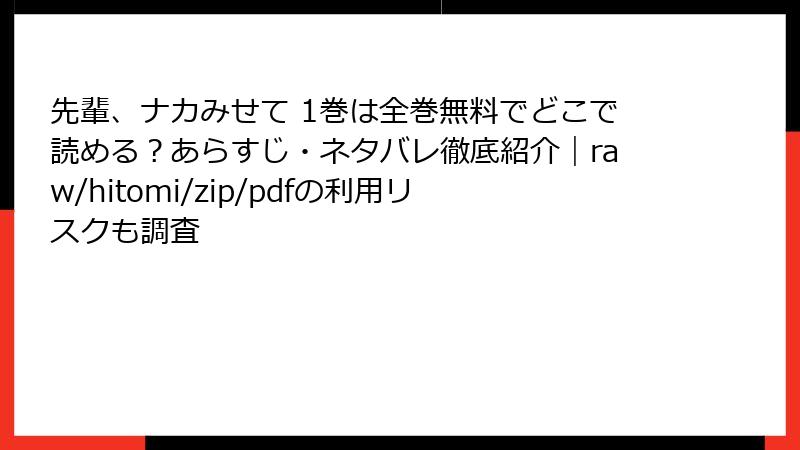 『先輩、ナカみせて』を海賊版(raw/hitomi/zip/pdf/漫画バンク)で読むとヤバい理由全解説