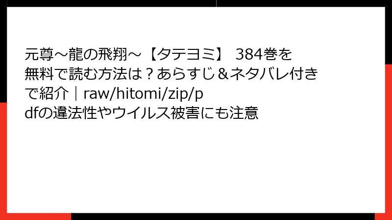 こんにちは、漫画ファンの皆さん! 人気の修仙ファンタジー元尊~龍の飛翔~【タテヨミ】のように、魅力的な作品が次々と生まれる漫画の世界。でも、無料で読みたい一心で、raw、hitomi、zip、pdf、漫画バンクなどの海賊版サイトに手を出していませんか? 今回は、そんなサイトを利用するリスクを徹底的に掘り下げます。ブログ記事形式で、読み応えのある内容をお届け。ネタバレなしで、純粋に「なぜ避けるべきか」を解説します。合法的な楽しみ方を提案しつつ、皆さんの安全を第一に考えたガイドです。それでは、危険の深淵を覗いてみましょう!
